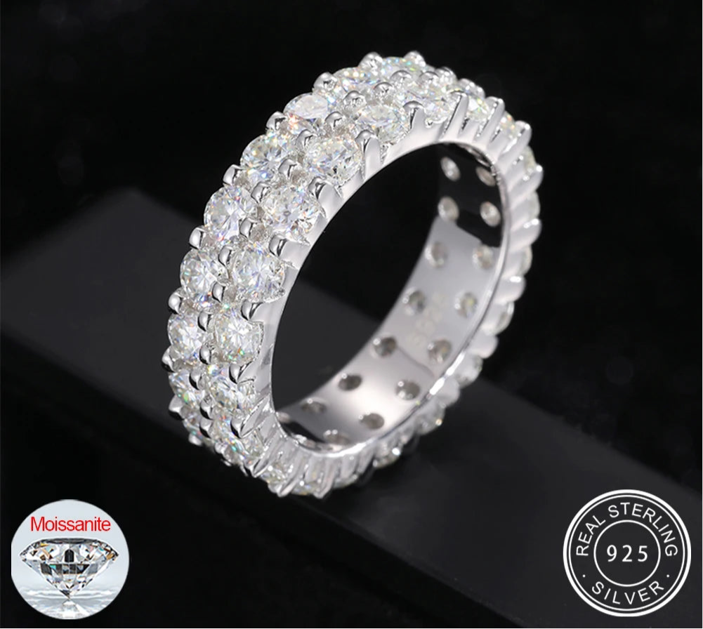 Moissanite VVS1 925 Silver Double Row Eternity Band Ring