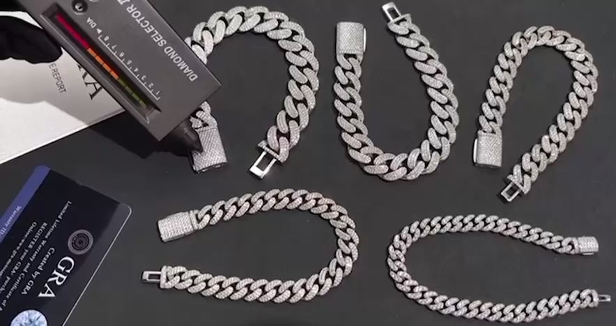 8mm/10mm/12mm/14mm Moissanite VVS1 925 Silver Prong Cuban Bracelet