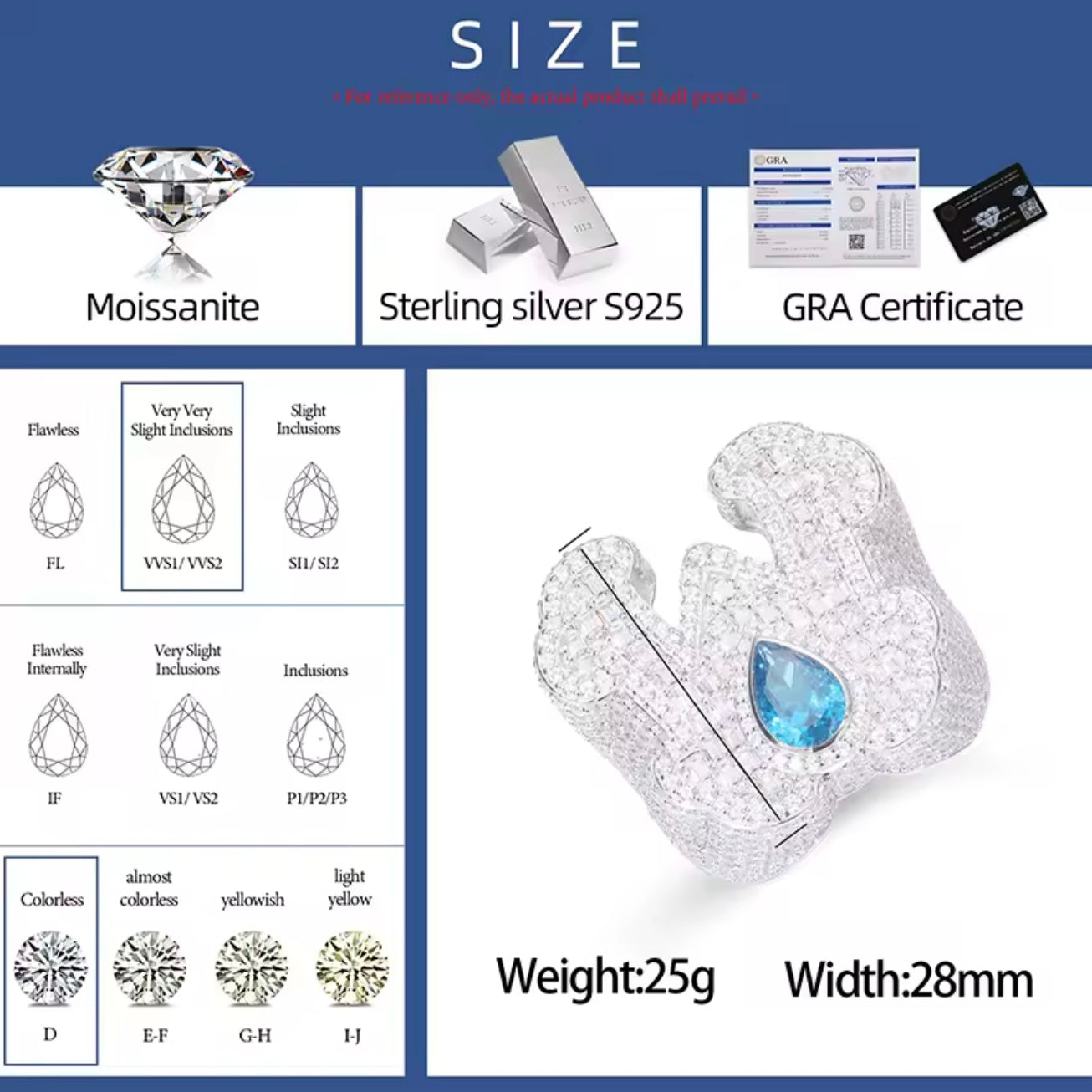 At THEICEDROP, every Moissanite piece is set with genuine VVS1 stones that rival diamonds in clarity and brilliance, paired with perfect D color grading for unmatched shine. Crafted to last — without the inflated jewelry markups.