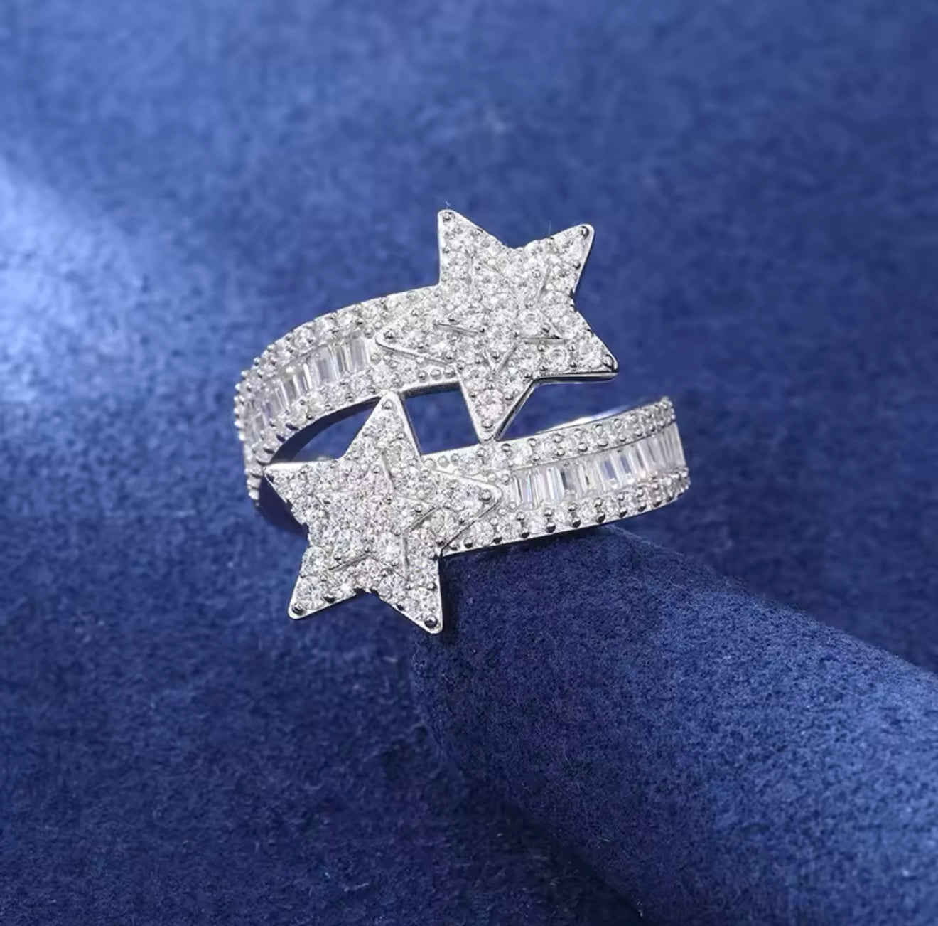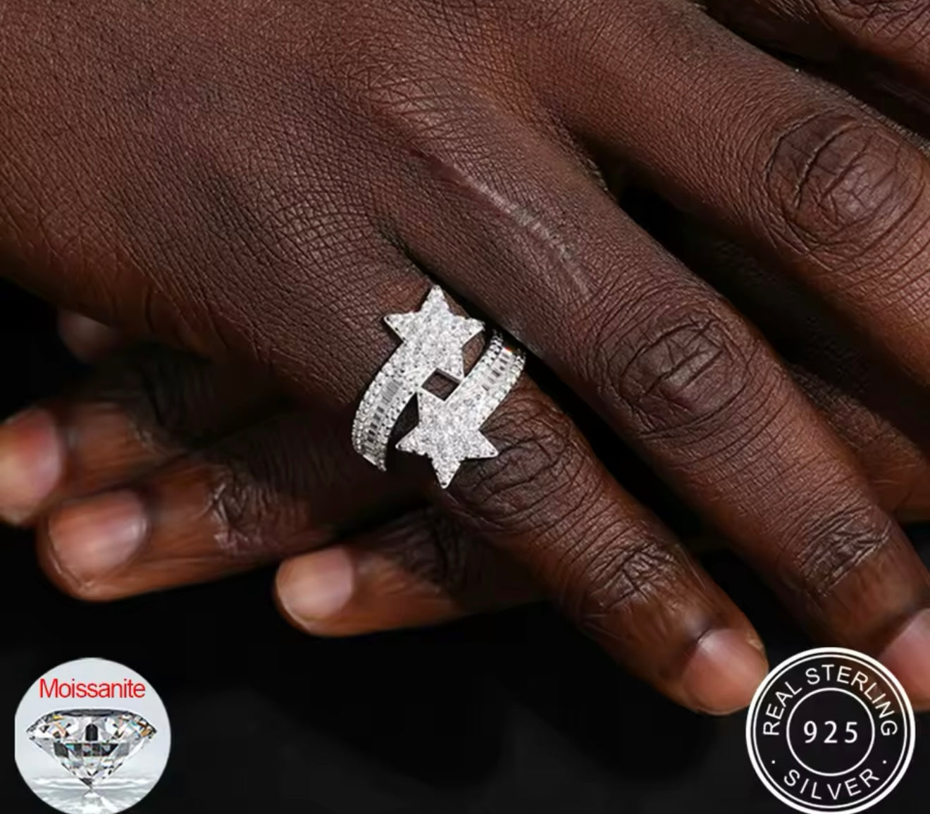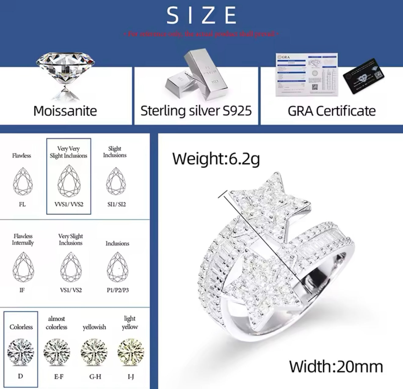 Moissanite VVS1 925 Silver Star Bangle Ring