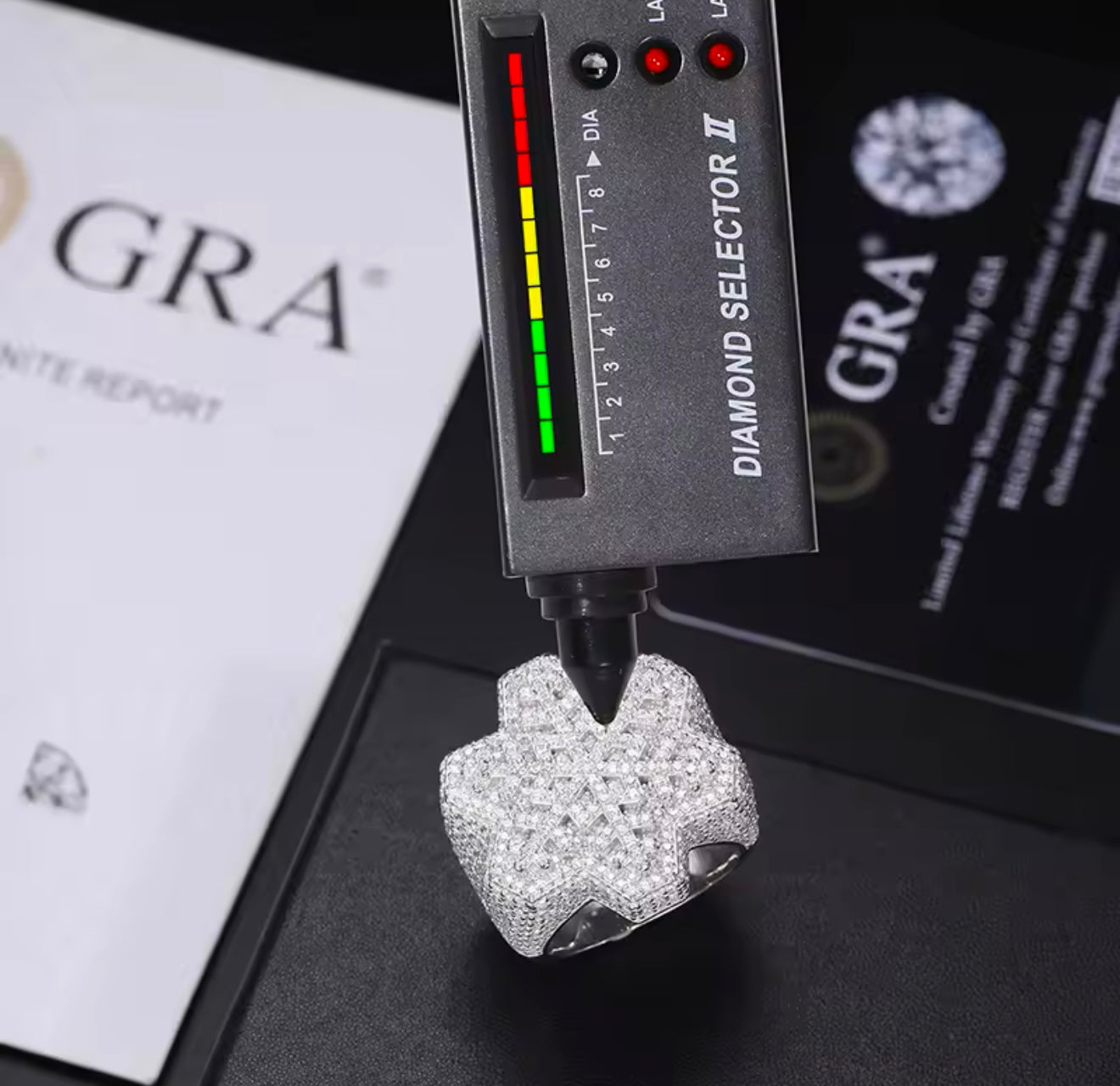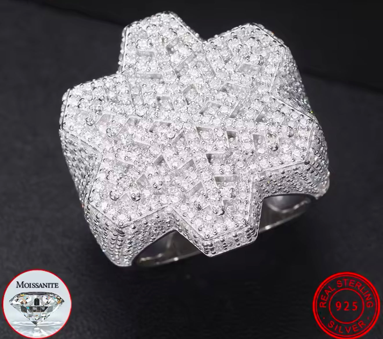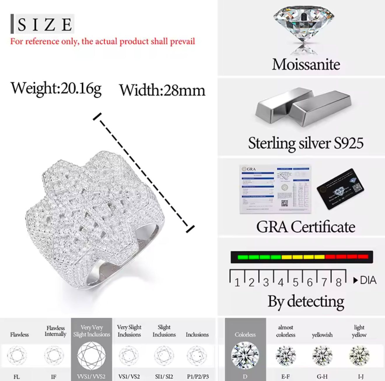 Moissanite VVS1 925 Silver Star Bangle Ring