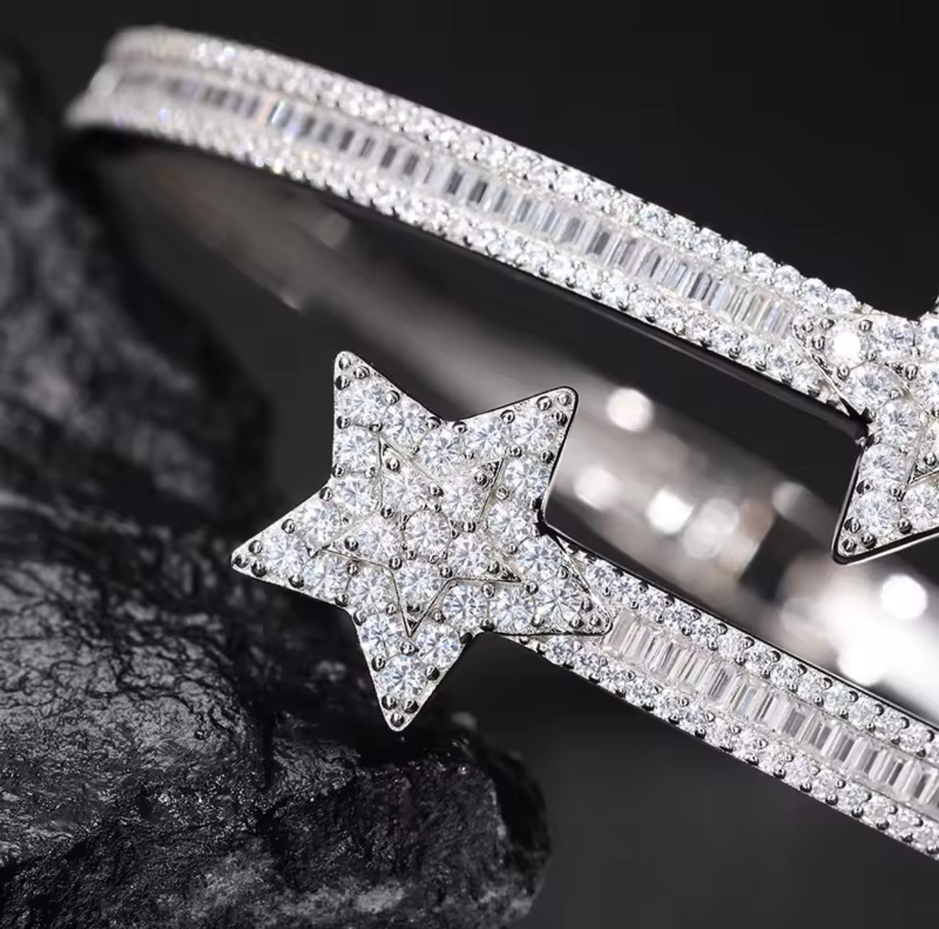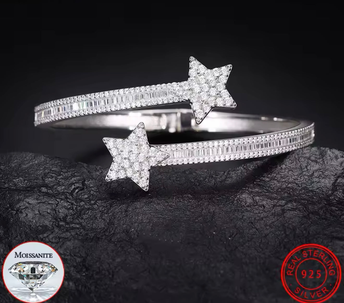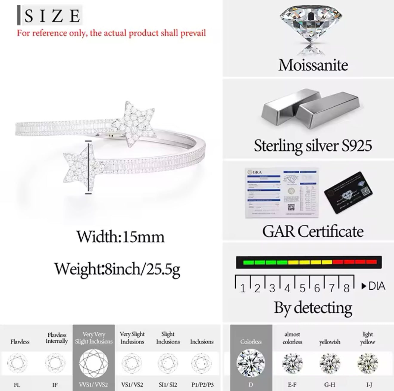 Moissanite VVS1 925 Silver Star Bangle Bracelet