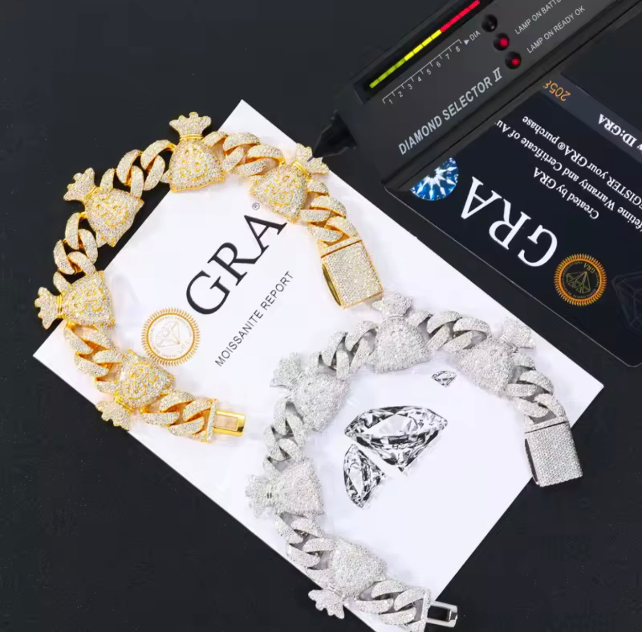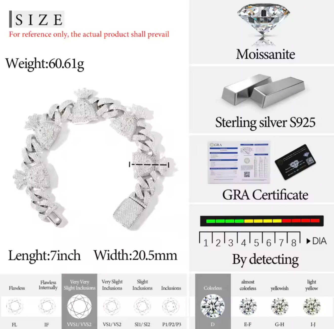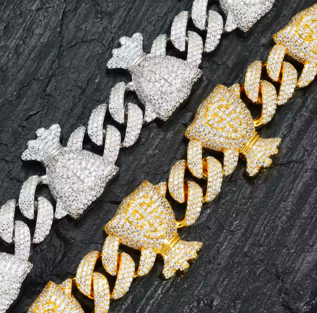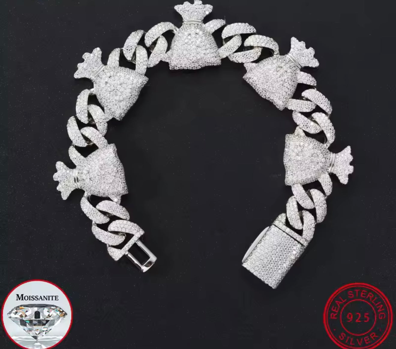 20.5MM Moissanite VVS1 925 Silver Money Bag Cuban Bracelet