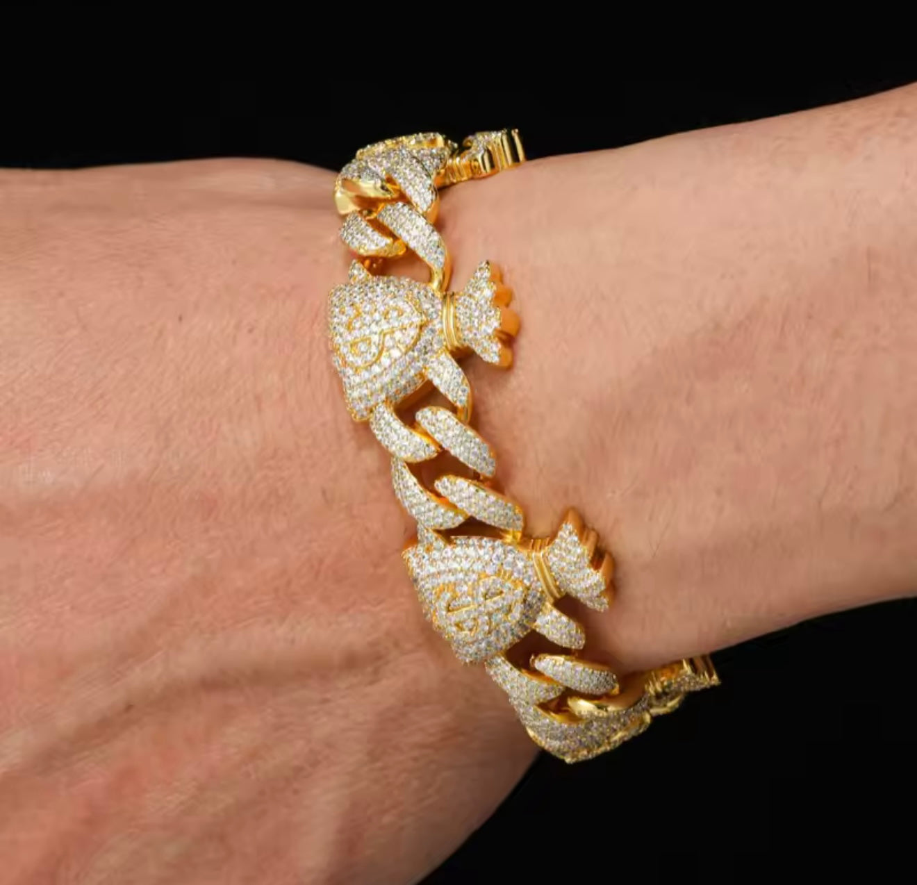 Statement Piece: Unique money bag links make this an exclusive flex