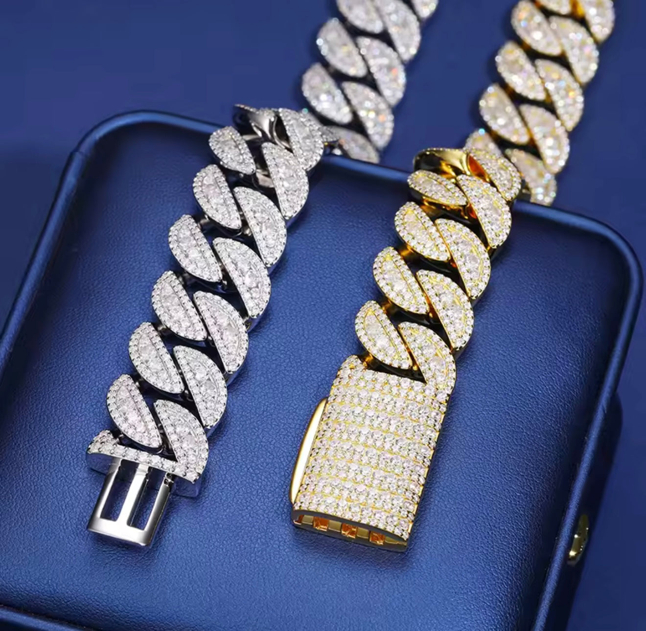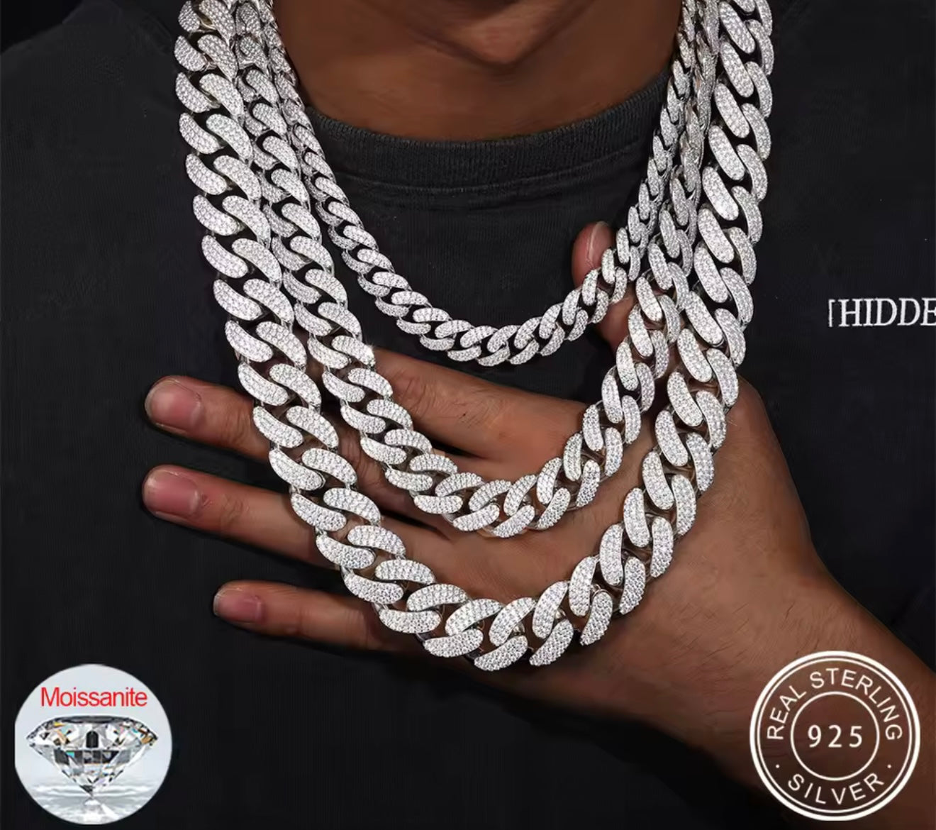 8mm-20mm Moissanite VVS1 925 Silver Prong Cuban Necklace