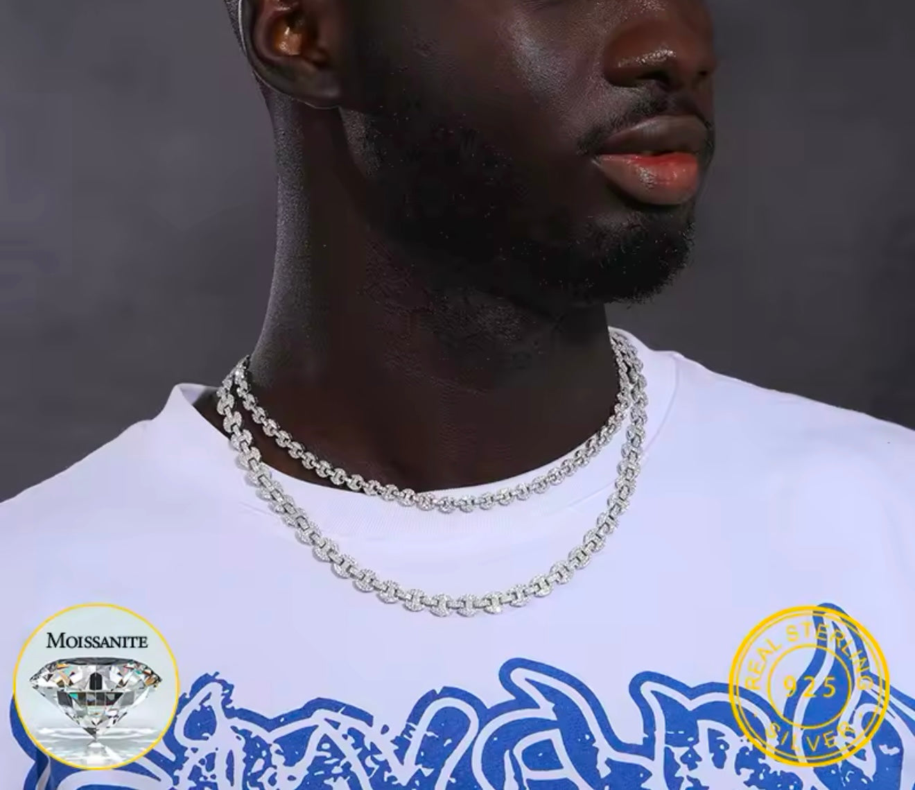 Turn heads with the 6MM Moissanite Link Necklace, a bold and luxurious piece designed for those who demand brilliance. Featuring high-quality moissanite stones that pass the diamond tester, this necklace delivers an unmatched shine that rivals traditional diamonds. Each 6MM moissanite stone is expertly set in a sleek, durable link design, offering both elegance and durability.