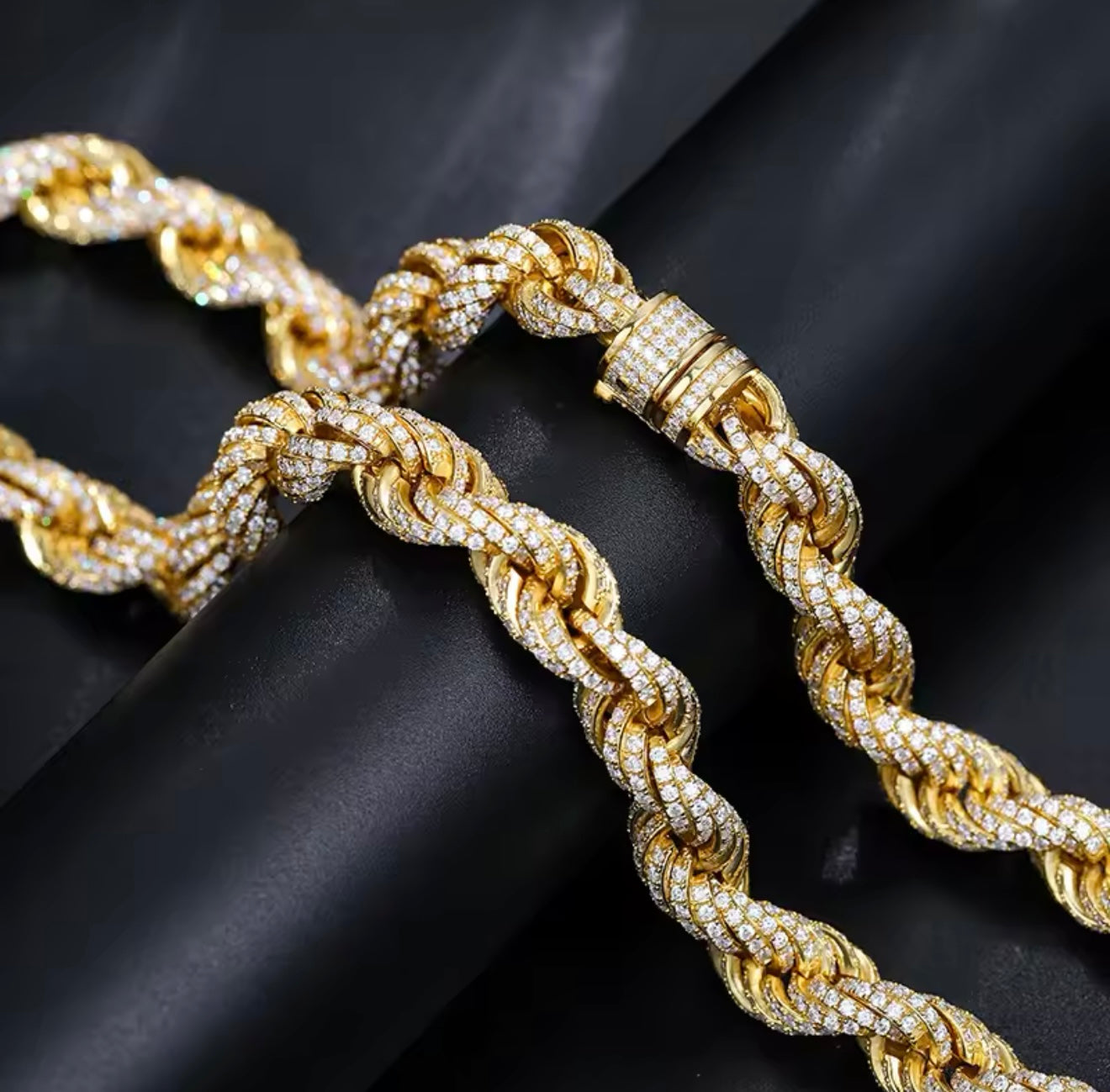 Elevate your style with the Moissanite Rope Necklace, a timeless piece crafted for those who demand sophistication and brilliance. Designed with high-quality Moissanite stones that pass the diamond tester, this necklace delivers the same fire and luxury as natural diamonds. The classic rope design, combined with an iced-out finish, ensures a bold and refined look that stands out in any setting.