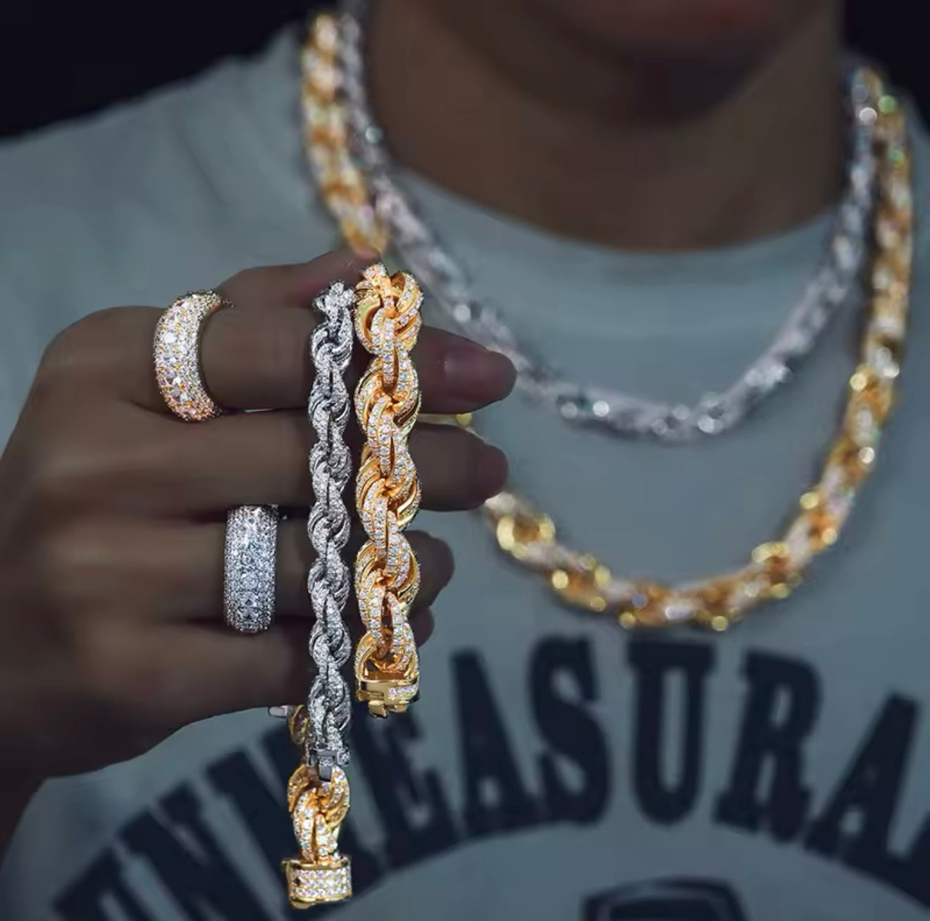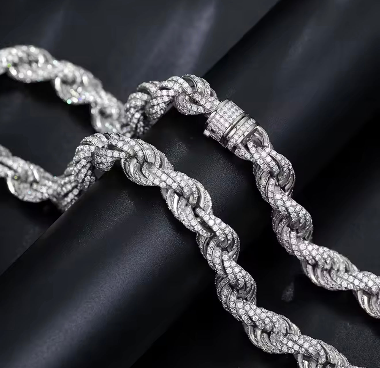 8mm/10mm/12mm/14mm Moissanite VVS1 925 Silver Rope Necklaces/Bracelets