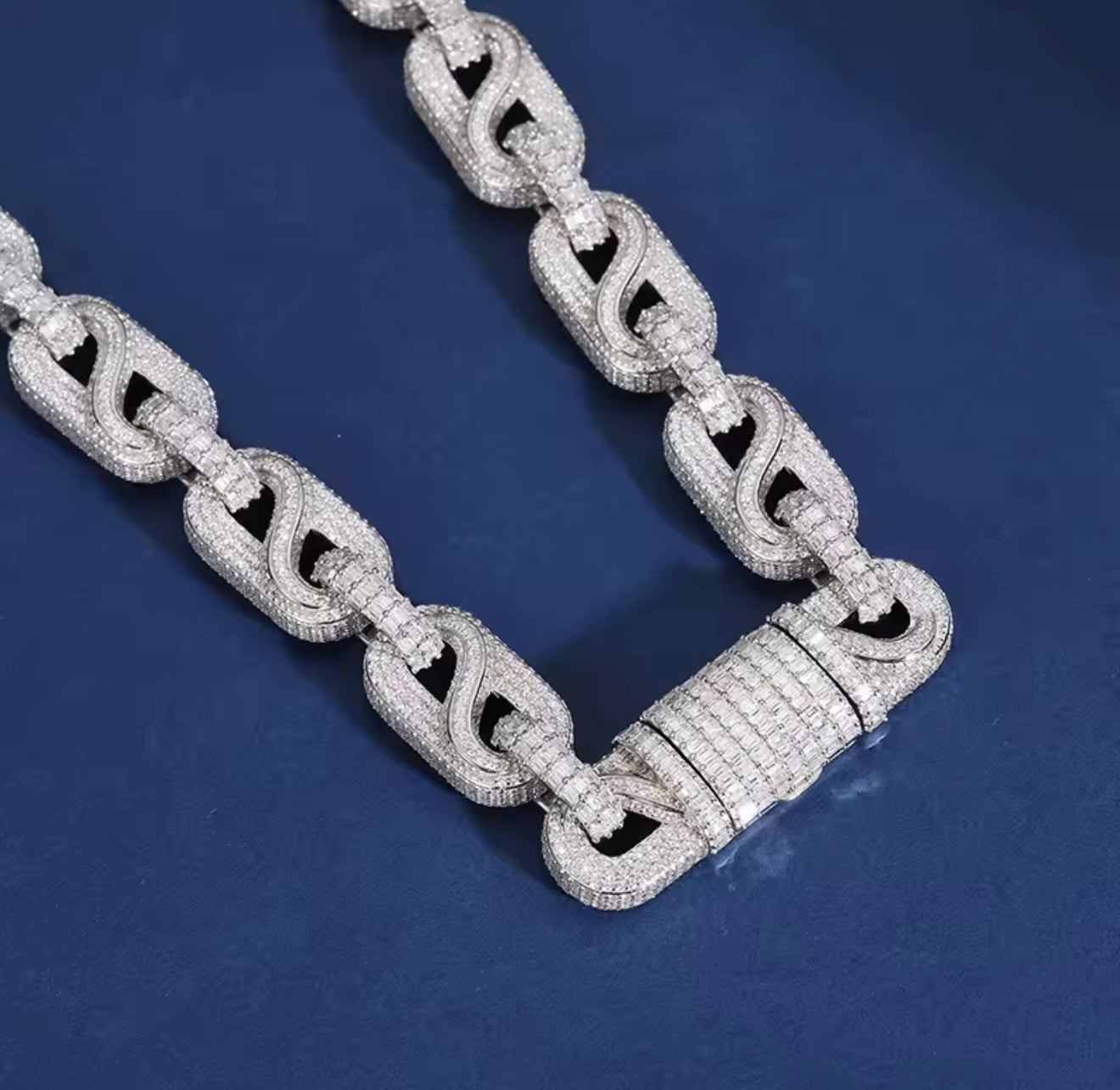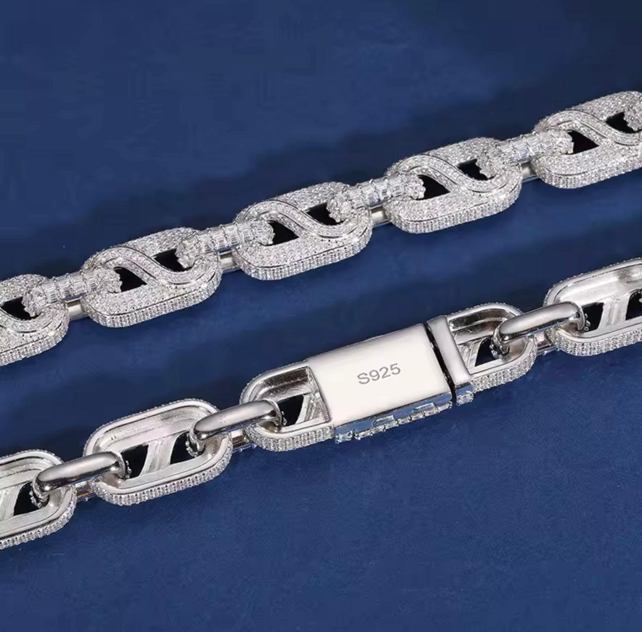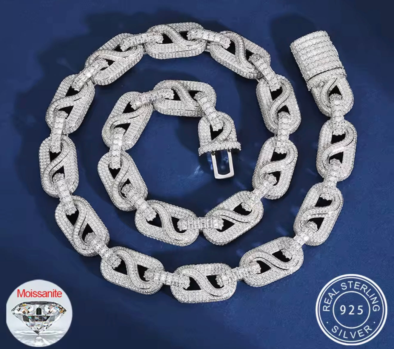 Crafted with precision and flooded with VVS1 Moissanite stones, the 14MM Infinity Link Necklace delivers a bold statement that lasts a lifetime. Set in solid 925 Sterling Silver, this piece is built to shine and built to last — guaranteed to pass any diamond tester.