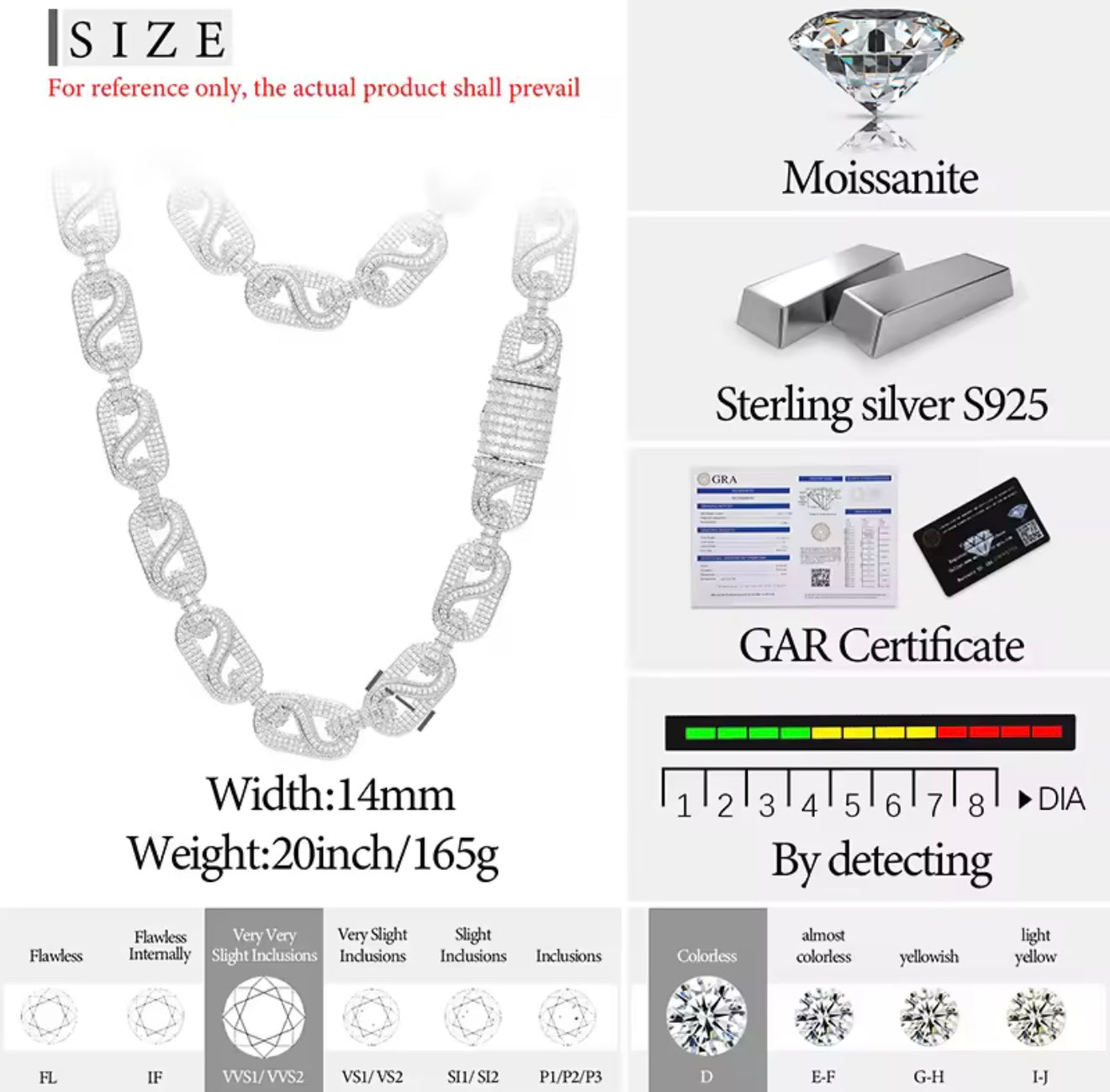 14MM Moissanite VVS1 925 Silver Infinity Link Necklace