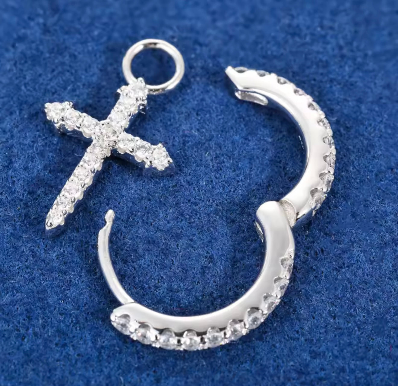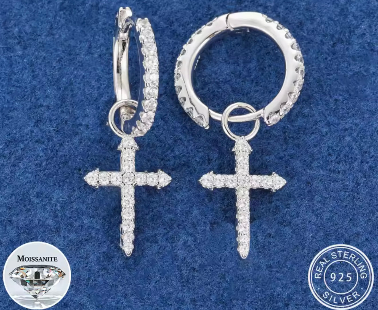 Elevate your style with these stunning Moissanite Cross Hoop Earrings, crafted to perfection with precision-cut moissanite stones that pass diamond testers for unmatched brilliance. Each earring features a sleek hoop design with a dazzling cross pendant, symbolizing faith and strength. Made from real 925 sterling silver, these earrings offer both luxury and durability. Whether you’re dressing up or keeping it casual, these hoops add the perfect drip of elegance to any fit.