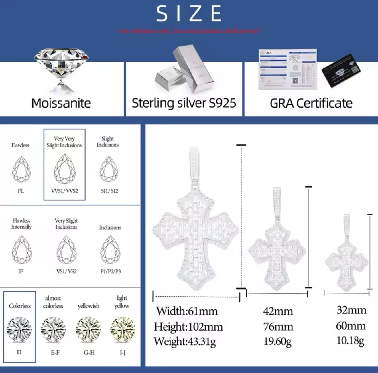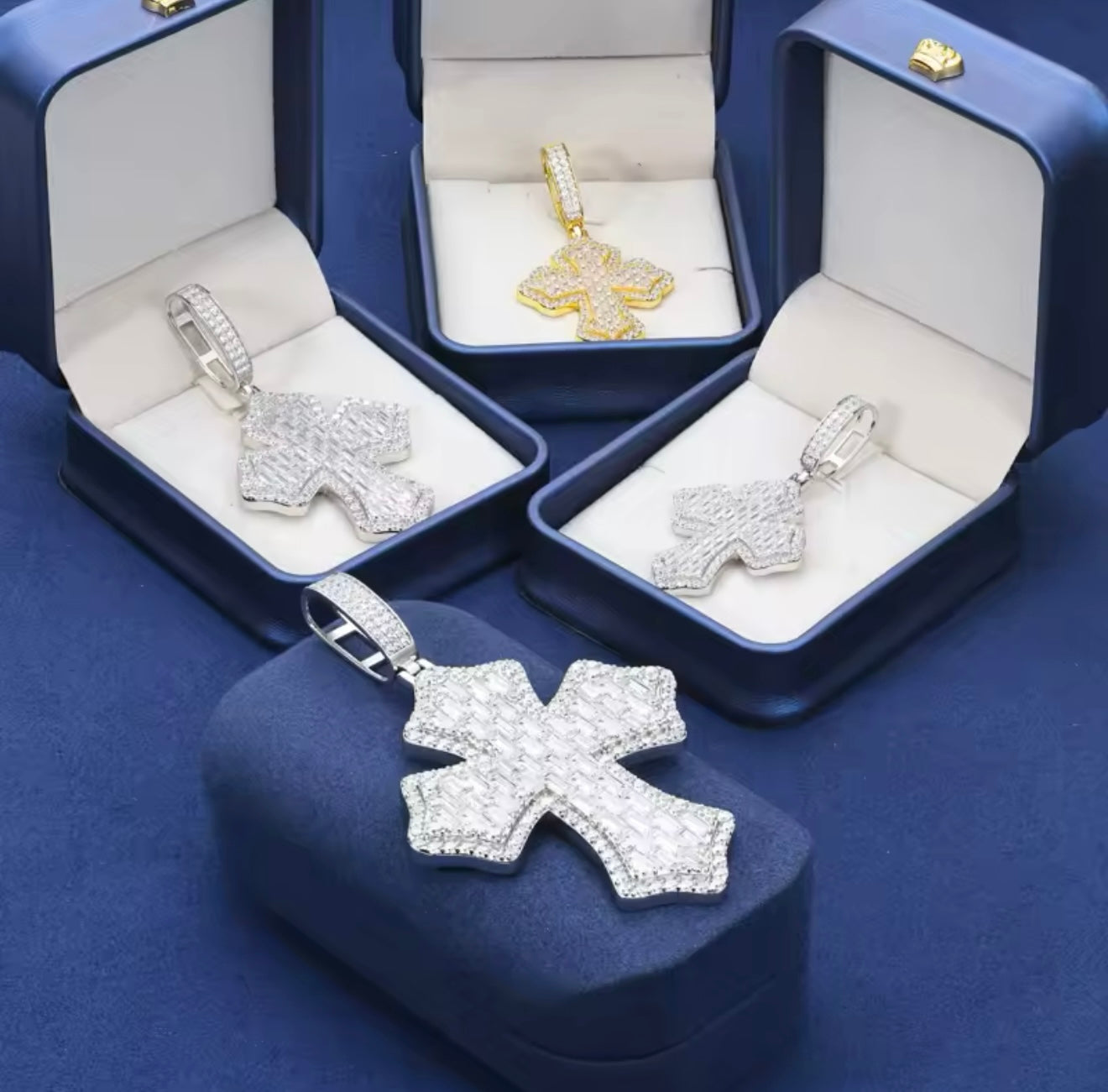 Moissanite VVS1 925 Silver Cross Baguette Pendant