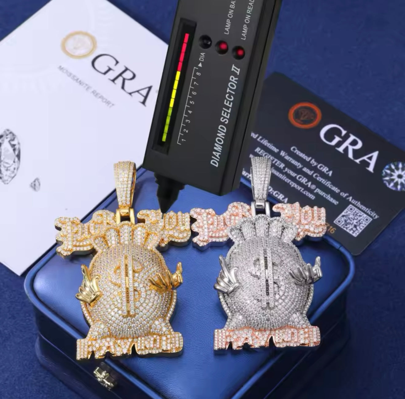 Moissanite VVS1 925 Silver Run It Up Money Bag Pendant