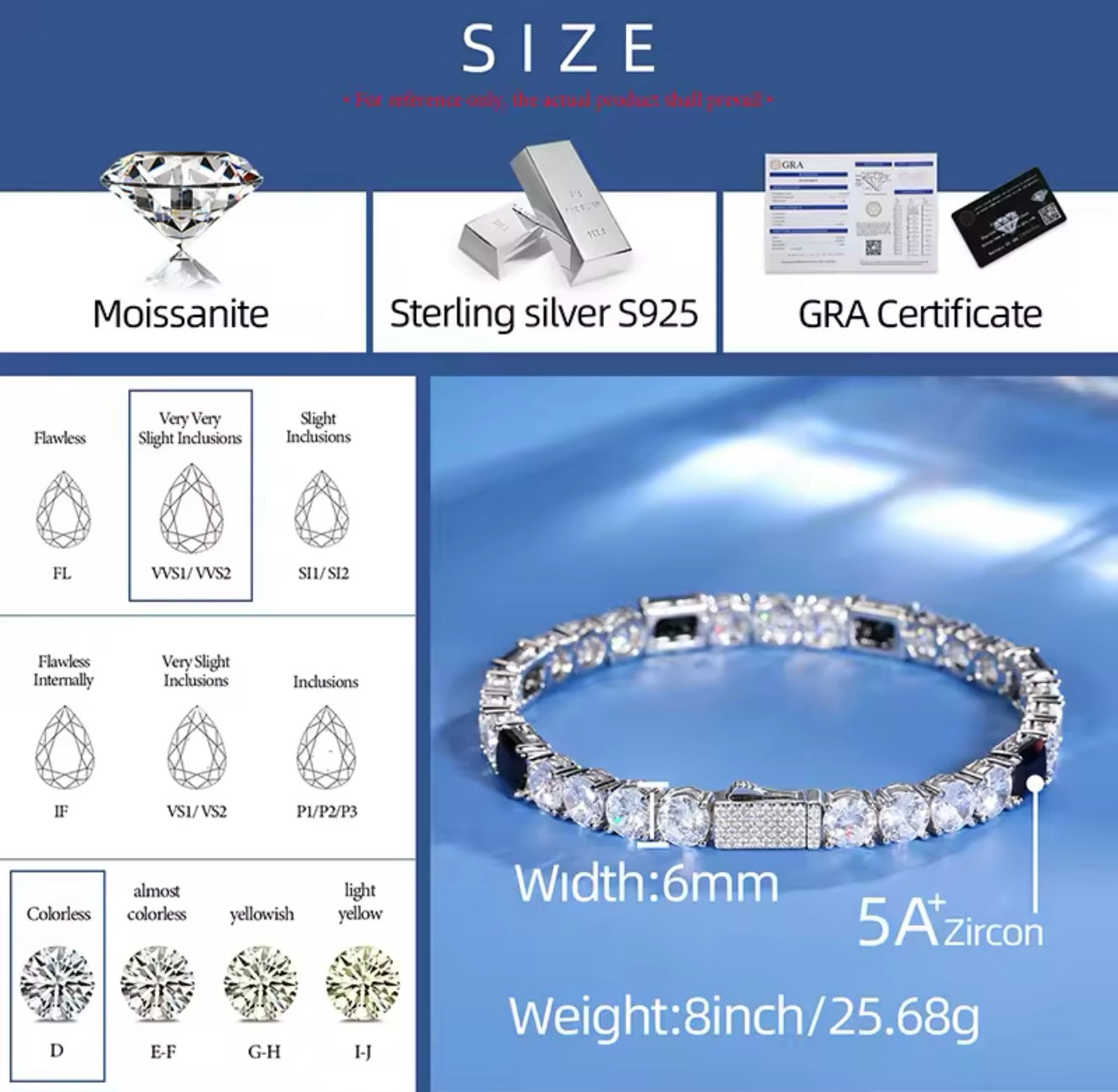 2MM Moissanite VVS1 925 Silver Tennis Bracelet