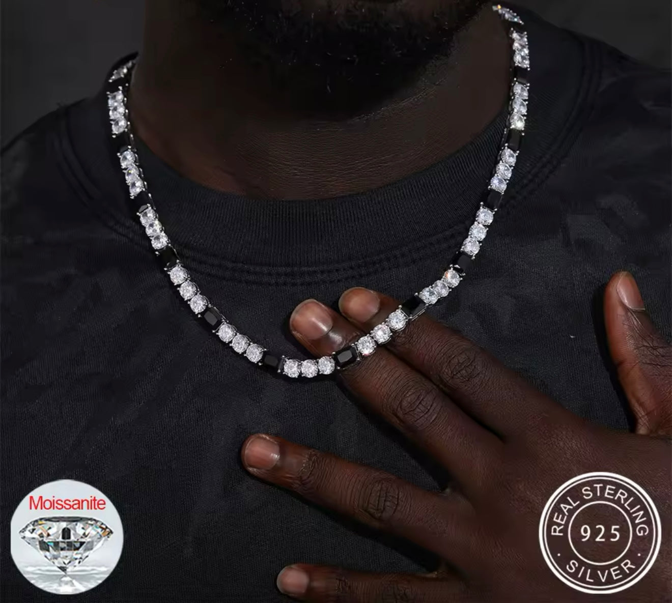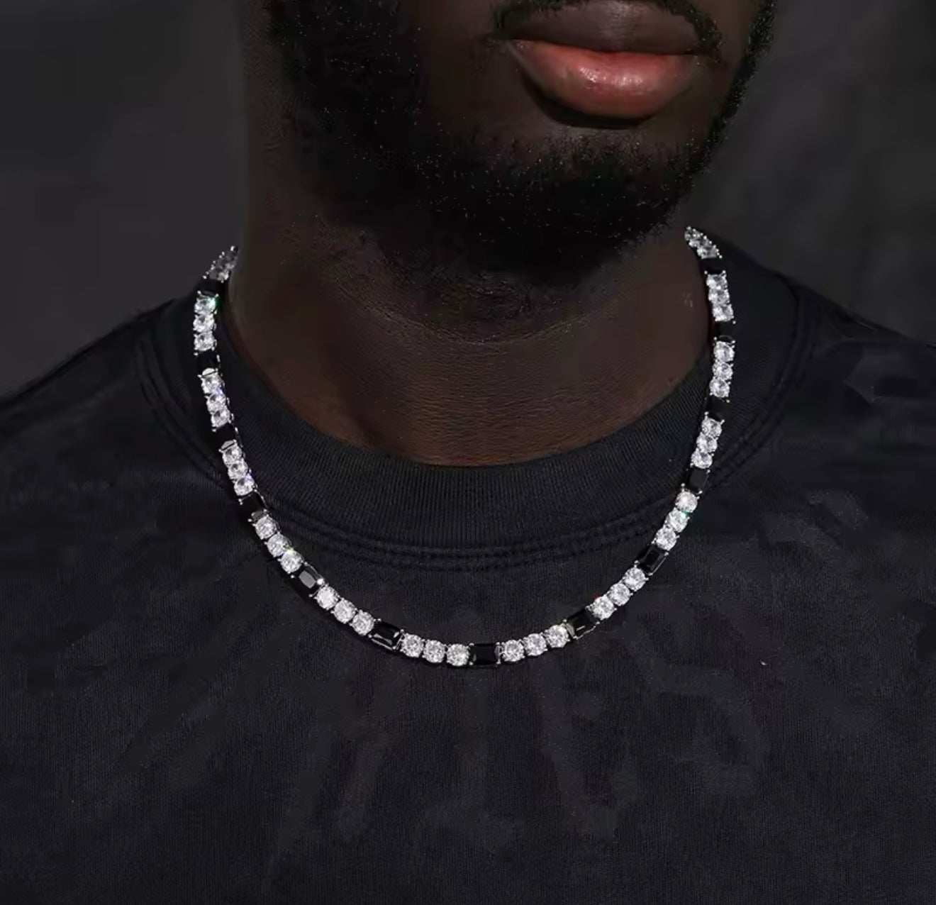 Crafted for those who demand luxury and exclusivity, the Moissanite 6MM Black Baguette Tennis Necklace delivers an undeniable statement of prestige.
