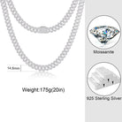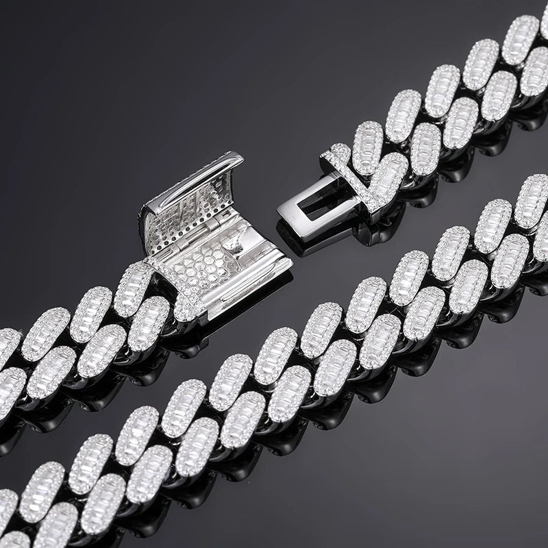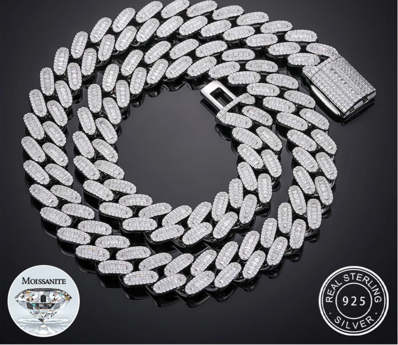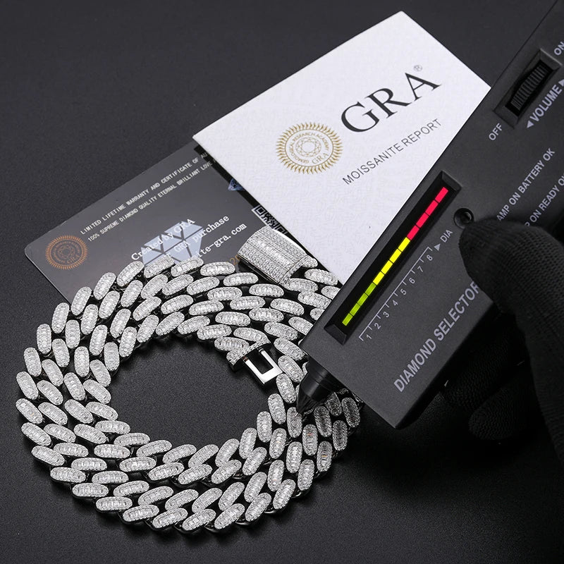 14 mm Moissanit VVS1 925er Silber Miami Cuban Baguette-Halskette (besteht Diamanttest)