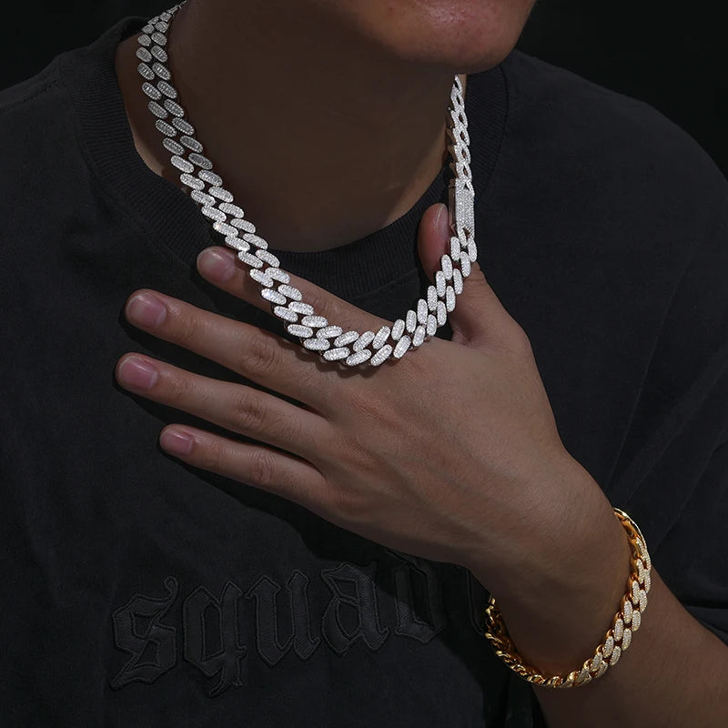 Mit einzeln gefassten Moissanit-Steinen im Baguetteschliff bietet dieses Statement-Stück maximalen Glanz und Feuer und besteht Diamantentests mit Bravour. Das ikonische Miami Cuban Link-Design wird durch präzisionsgeschliffene Steine aufgewertet, die das Licht aus jedem Winkel reflektieren.