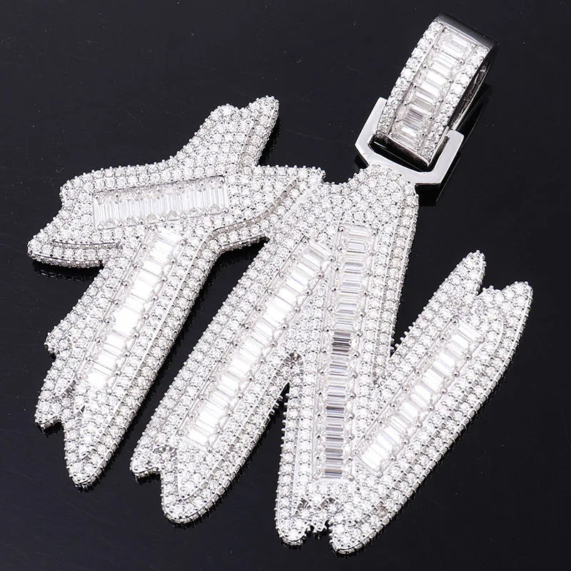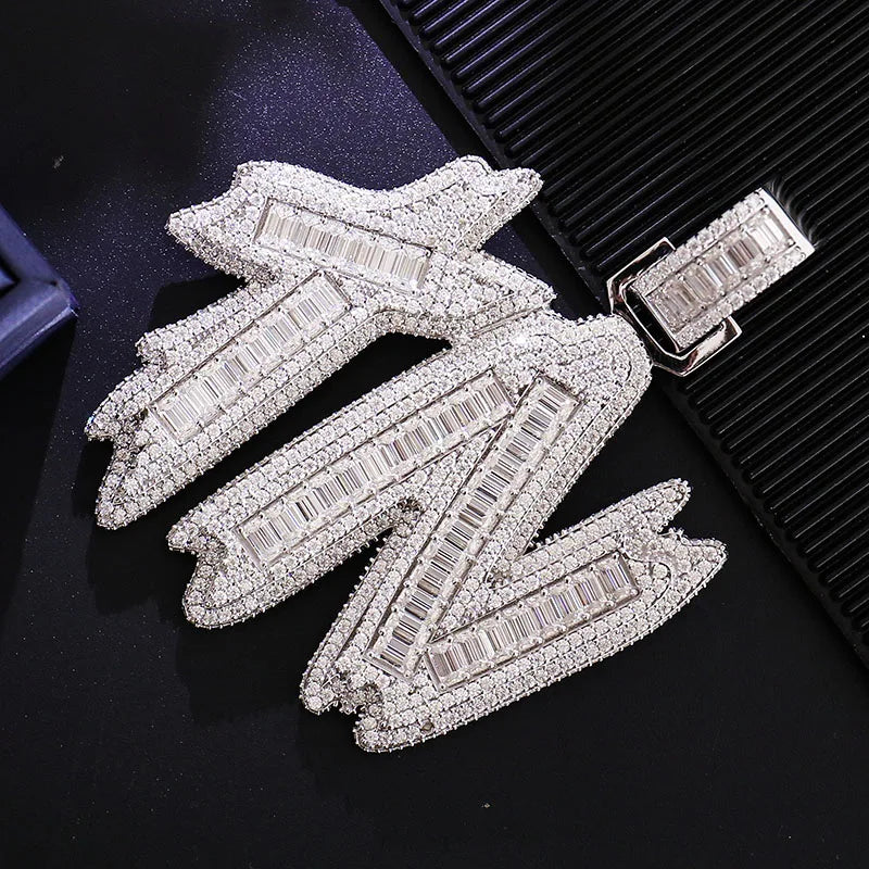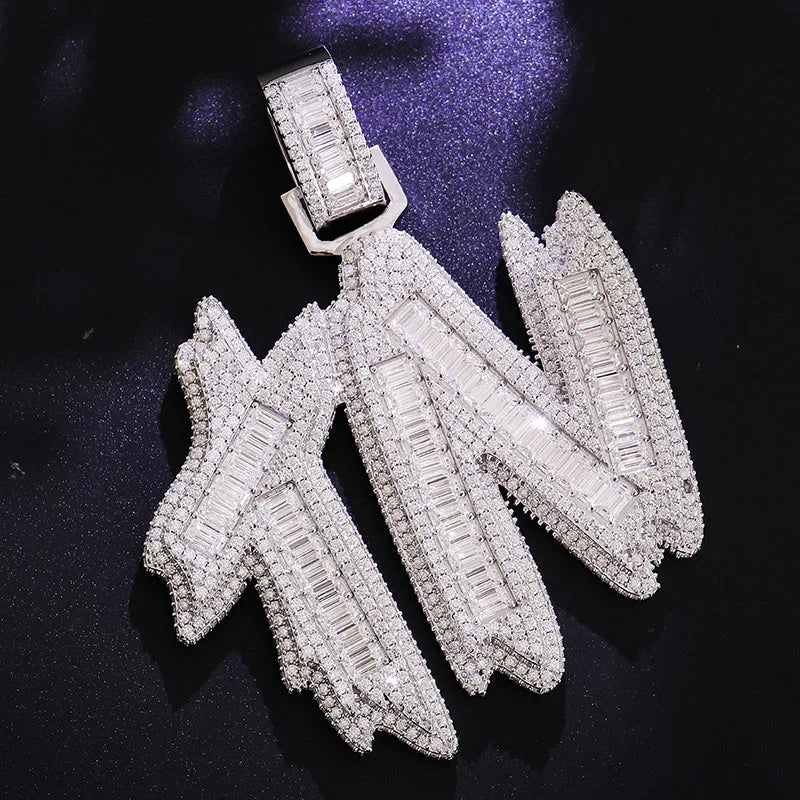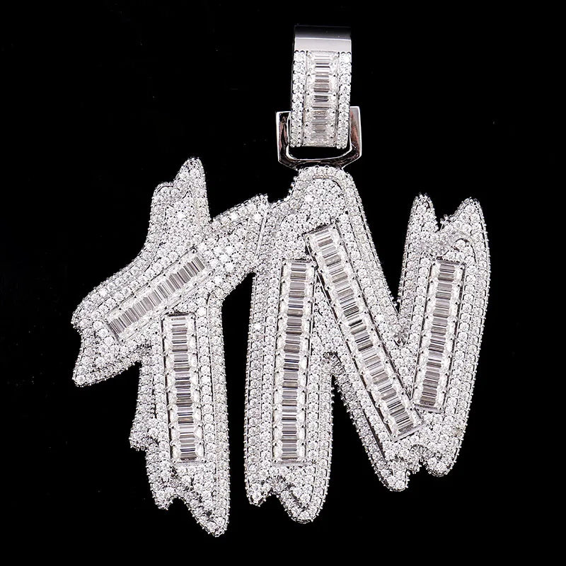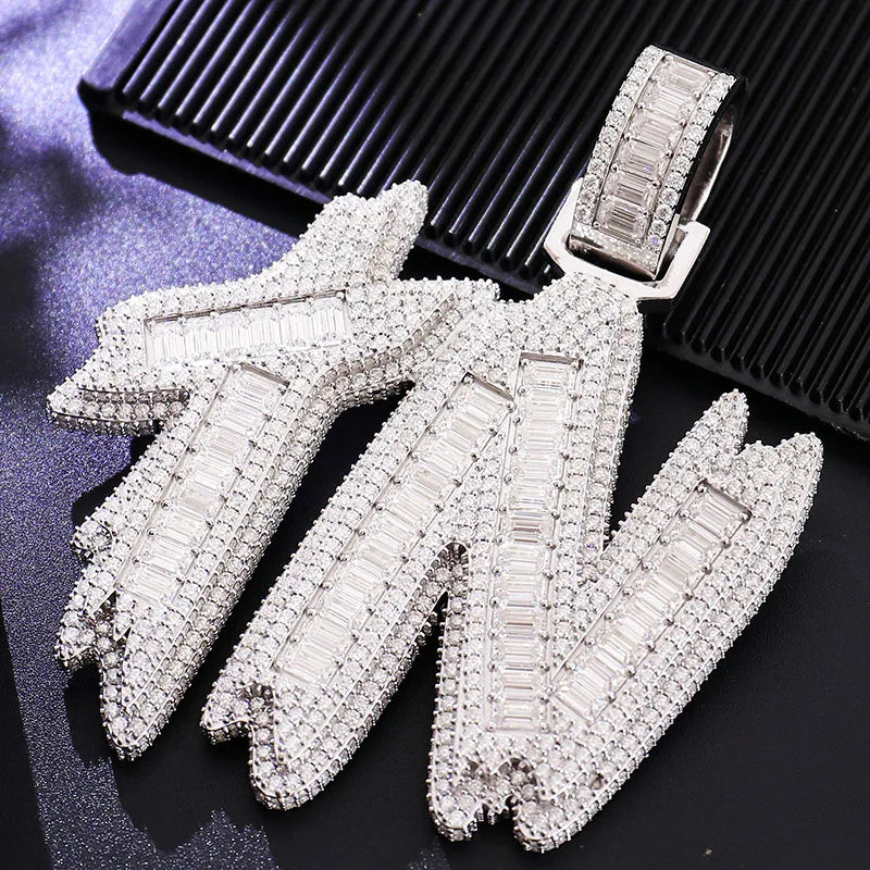 925er-Silber-Moissanit-VVS1-Gletscher-Baguette-Buchstaben-Anhänger (besteht den Diamanttest)