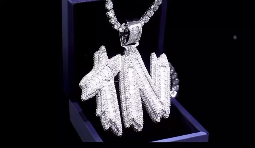 Machen Sie Ihren Namen bekannt – laut, eisig und unvergesslich. Der Moissanite Glacier Baguette Letter Anhänger verleiht mit individuell gestalteten Buchstaben, die mit handgefassten Moissanite-Baguettes und runden Steinen besetzt sind, die das Licht aus jedem Winkel einfangen, einen starken Ausdruck. Dieses Schmuckstück verkörpert erstklassige Handwerkskunst und luxuriöse Energie und besteht Diamantentests mit Leichtigkeit.