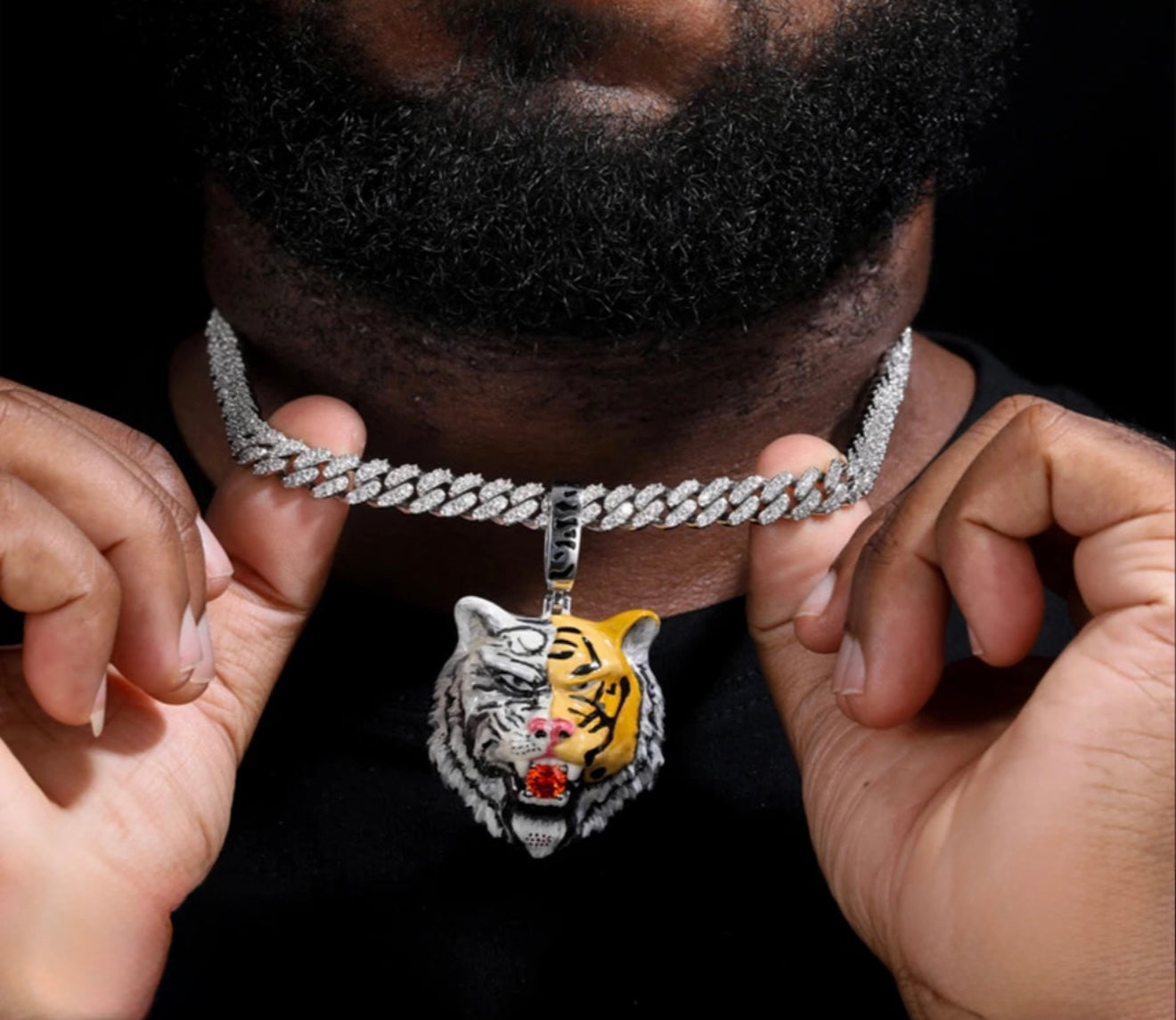 Moissanit VVS1 925 Silber Tiger Split Face Anhänger Halskette (Diamanttest bestanden)