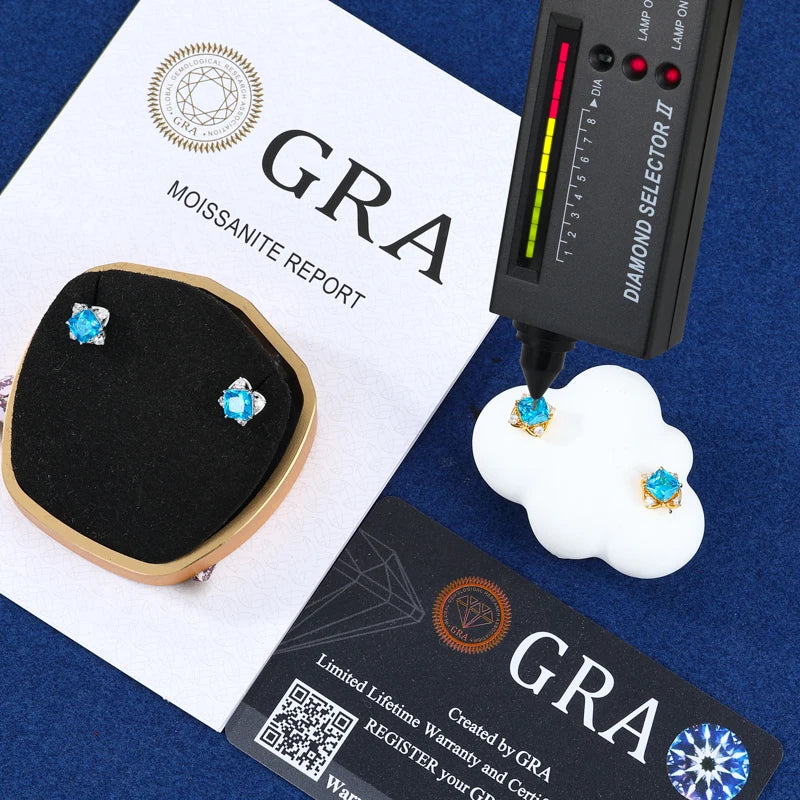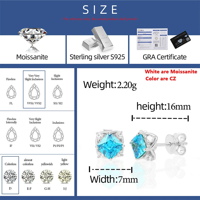 Pendientes de plata 925 Moissanite VVS1 con corte escarchado Aqua (pasa el probador de diamantes) para este