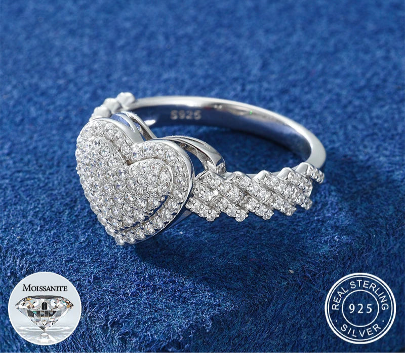 Enamórese del brillo del Anillo Corazón de Moissanita Hielo, donde la elegancia se funde con la emoción. Elaborado en auténtica plata de ley 925, este anillo presenta un deslumbrante corazón central, completamente incrustado con piedras de moissanita de primera calidad que superan con creces la prueba de diamantes. La banda con acabado hielo añade un brillo extra, convirtiéndolo en el regalo perfecto o una declaración de amor propio. Audaz, romántico y diseñado para llamar la atención: es más que un anillo, es una vibra para siempre.