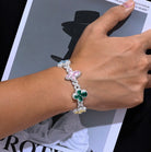 Moissanite VVS1 925 Silver Clover Eye Link Red Accent Bracelet