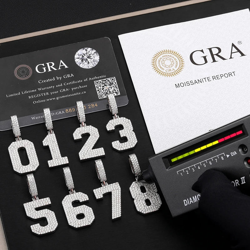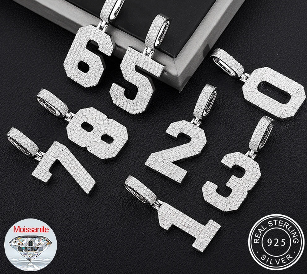 Wisiorek z niestandardowym numerem z moissanitem VVS1 ze srebra 925 (przeszedł test diamentów)
