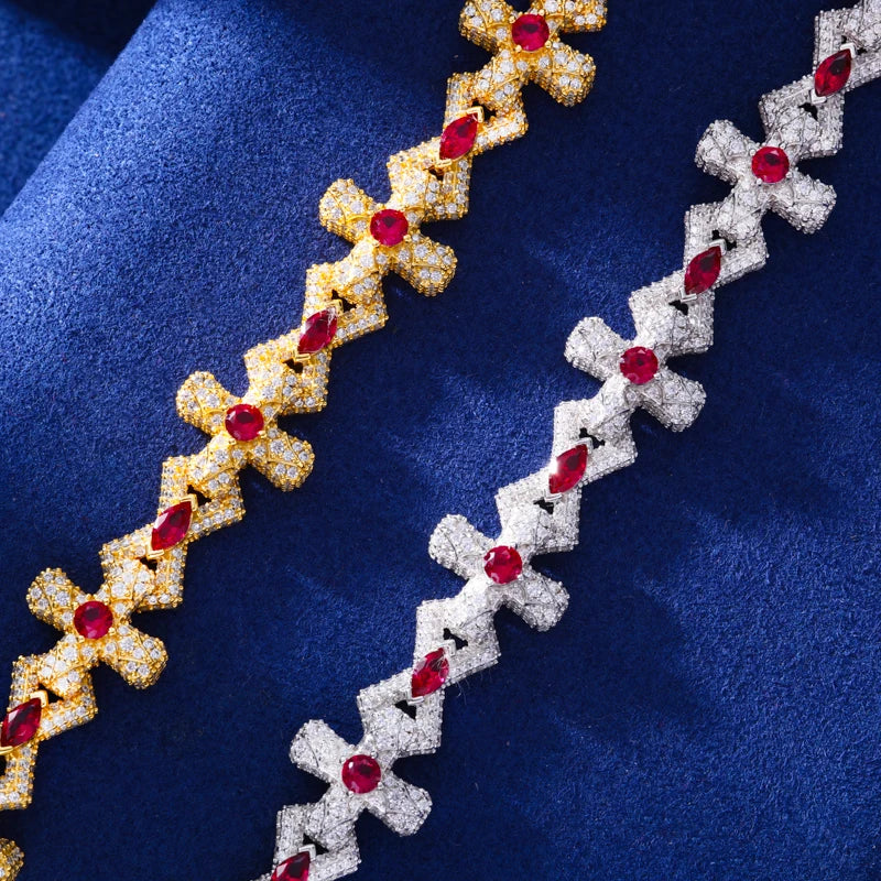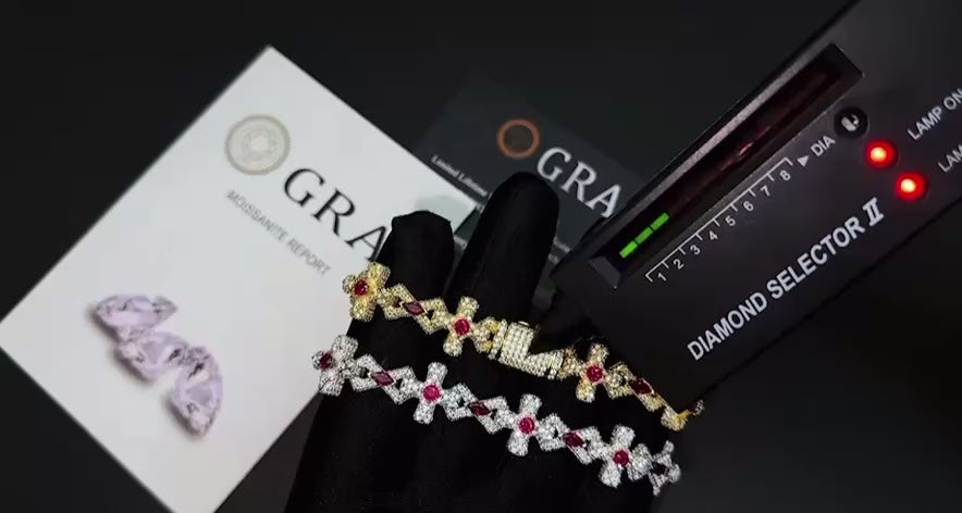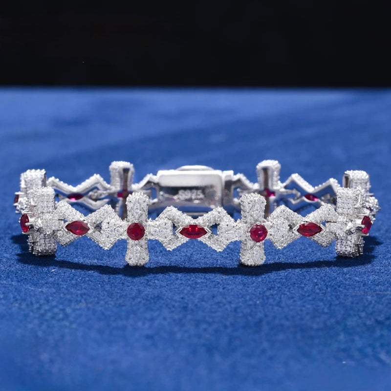 The Celestia Cross Link Bracelet merges spiritual symbolism with modern luxury. Each meticulously crafted cross link is set with premium VVS1 moissanite stones, creating a continuous flow of brilliance that catches light from every angle. This is jewelry that makes a statement—refined, bold, and unmistakably premium.