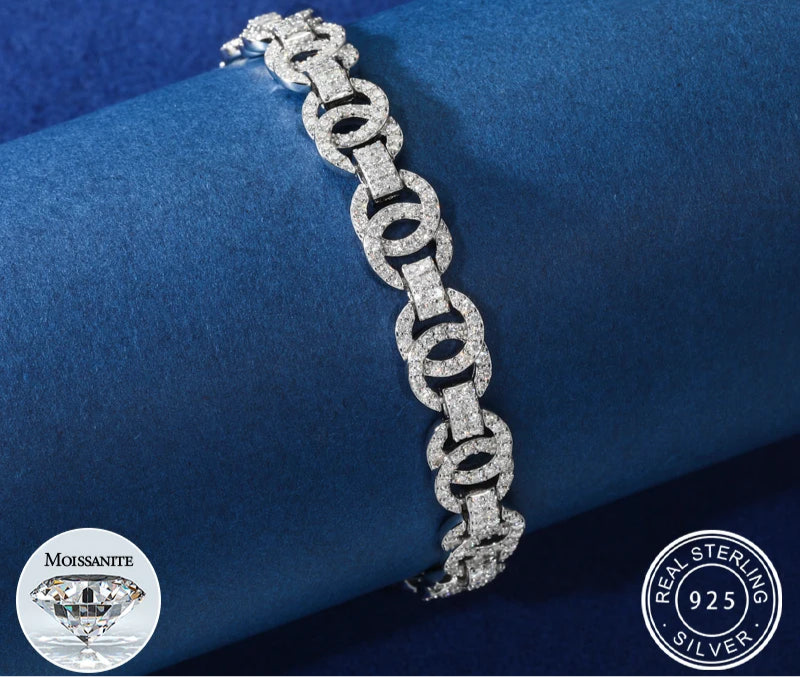 Moissanite VVS1 925 Silver Interlink Chain Bracelet