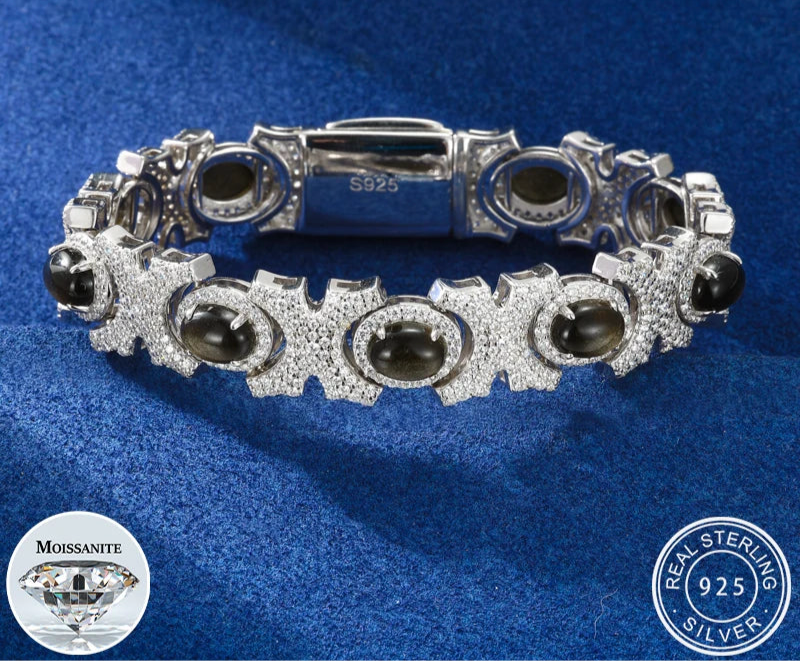 MoissaniteVVS1 925 Silver Noir Royale Oval Link Bracelet