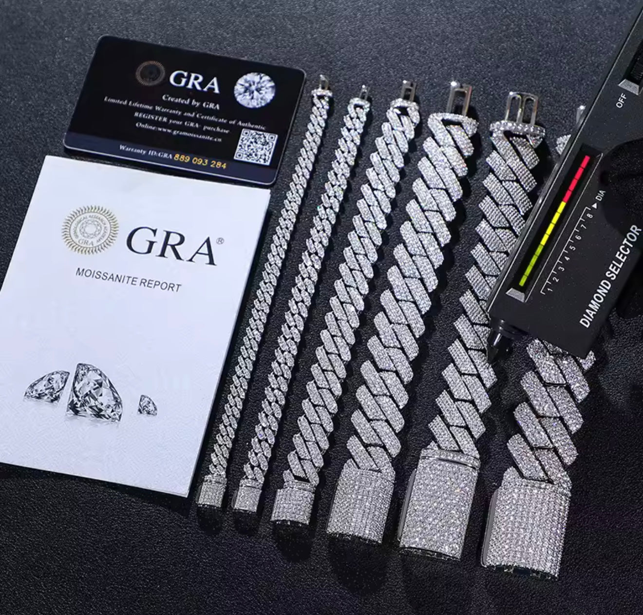 6mm-18mm Moissanite VVS1 925 Silver Miami Cuban Bracelet